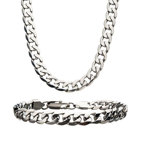 Men S Stainless Steel Curb Chain Necklace Bracelet Set